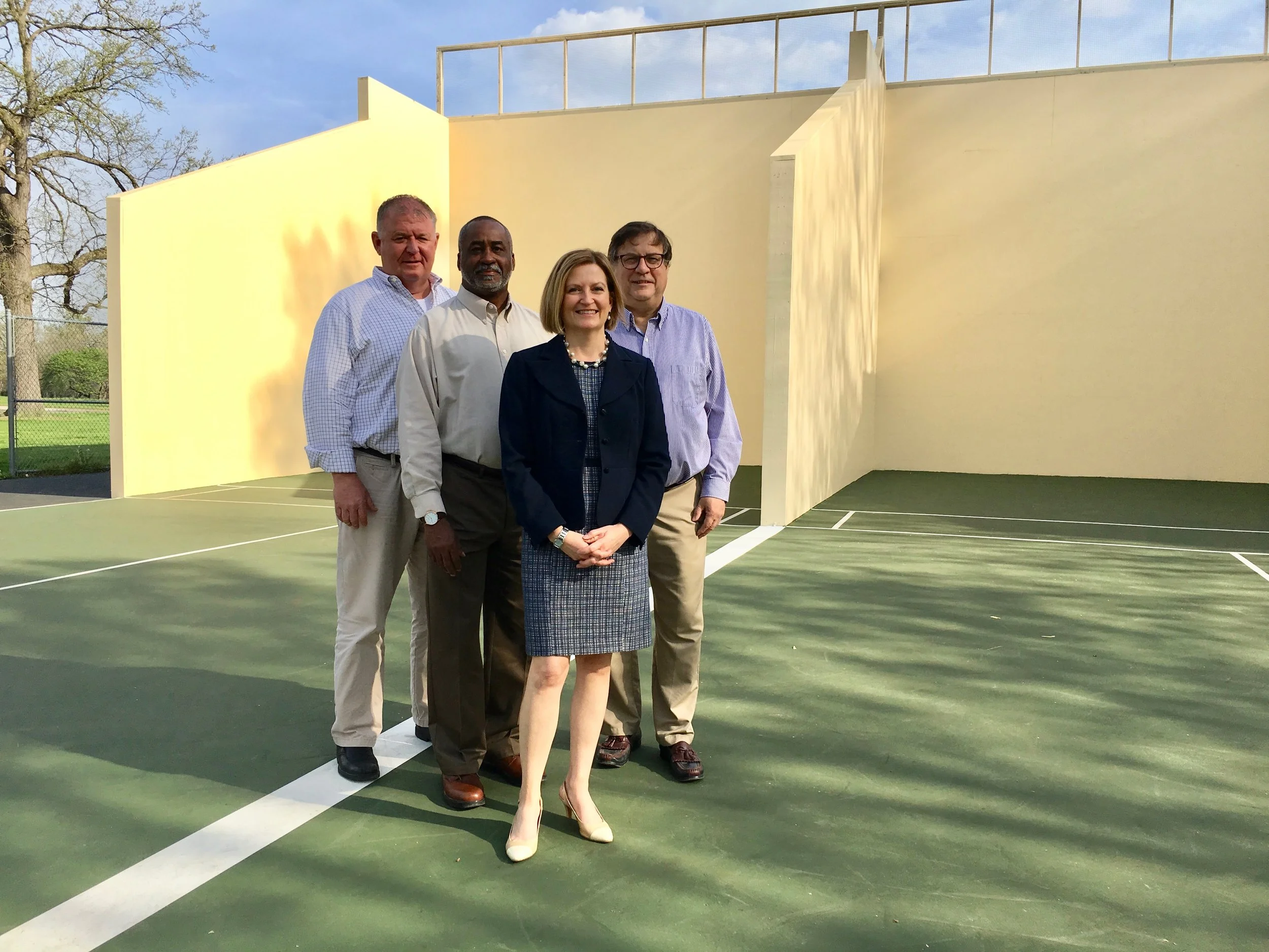 Representatives from Forest Park Forever and the City of St. Louis met to tour the newly refurbished courts after the work was completed. Forest Park Forever President and Executive Director Lesley S. Hoffarth commented on the importance of maintaining assets like the handball courts: "Throughout every season you will see people using these handball courts, which provide a welcoming space to compete and have fun and a place to build community for so many St. Louisans. We are excited that these improvements have been completed and grateful to those who helped make them possible."
